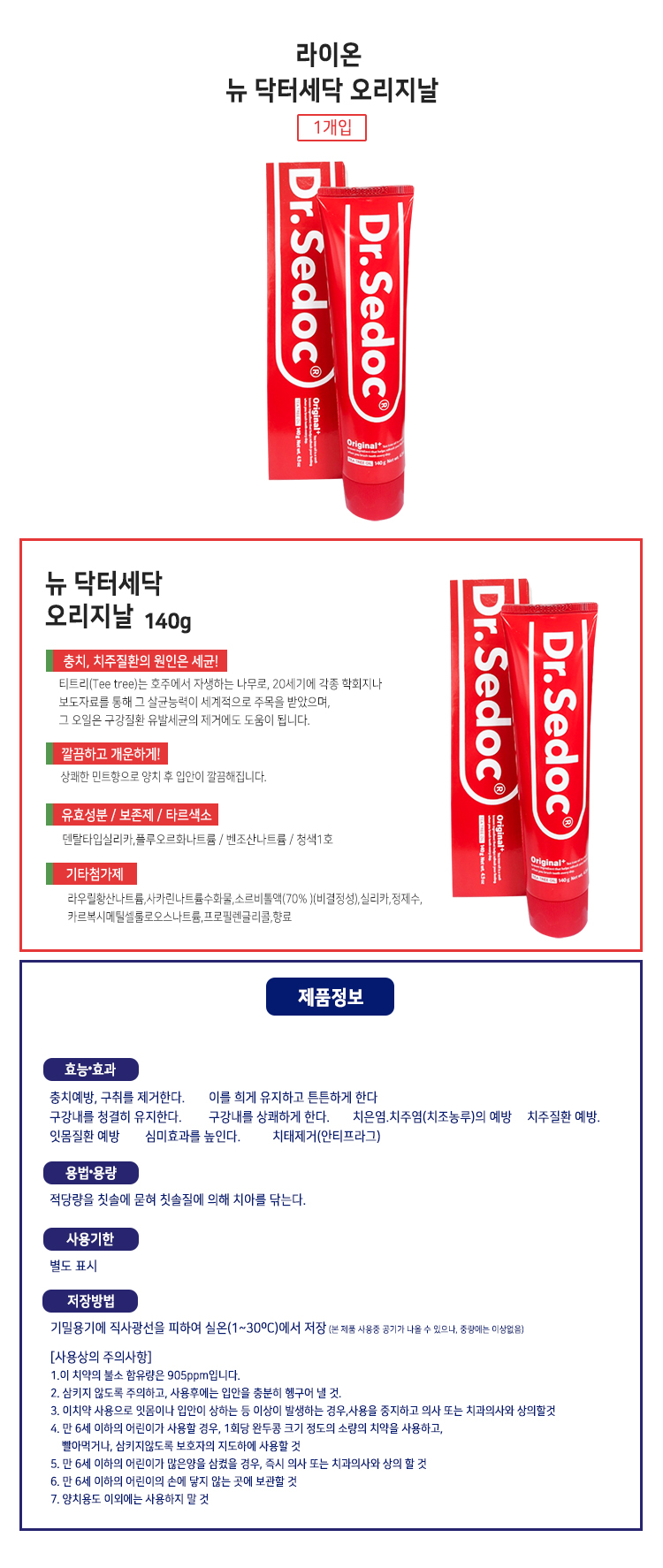 ■ 품명 및 모델명 : 닥터세닥 오리지널 플러스치약(140g)