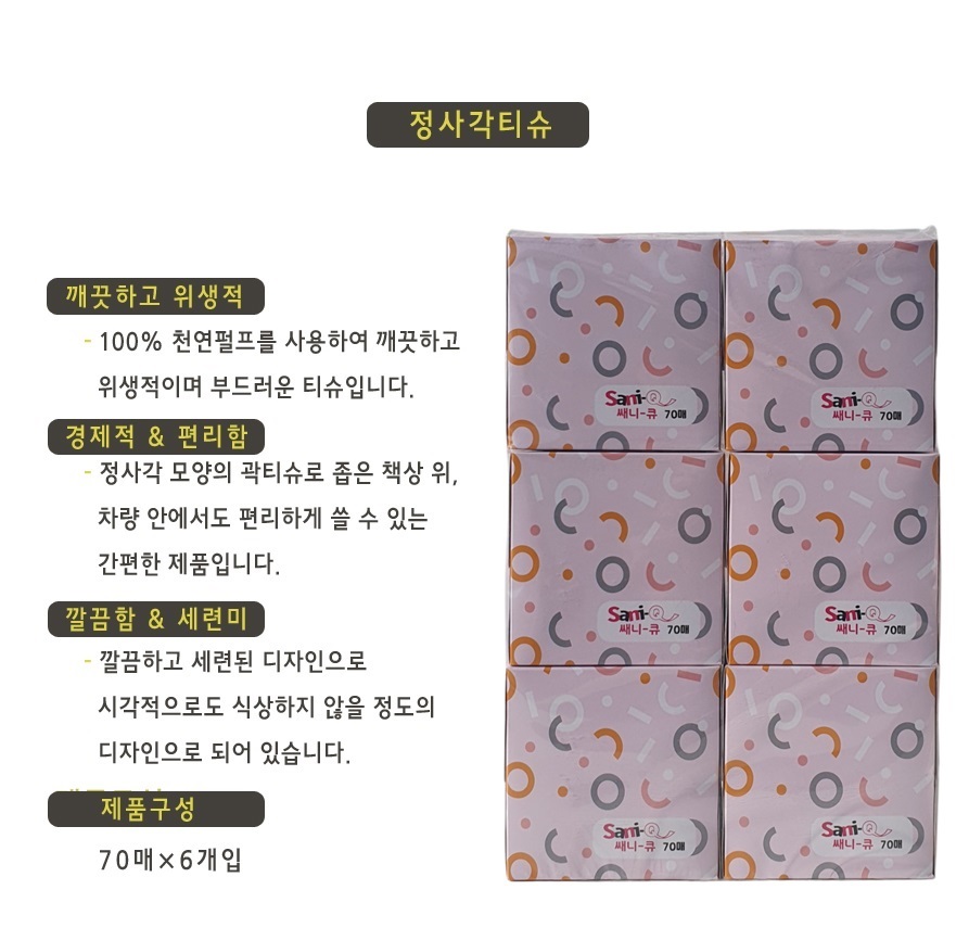 ■ 품명 및 모델명 : [업체배송]갑티슈 쌔니큐 콤비 70매x6개입