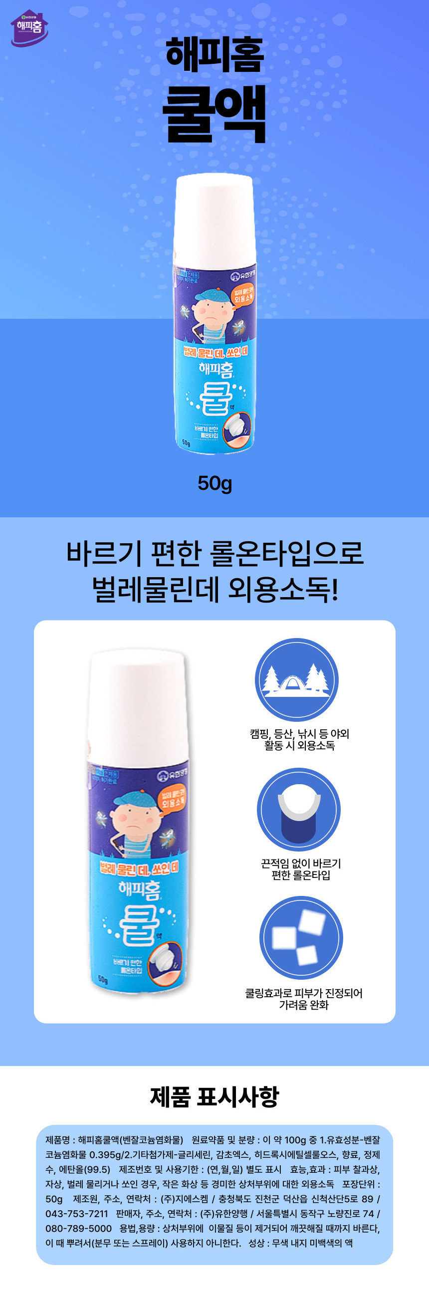 ■ 품명 및 모델명 : 유한양행 해피홈 쿨액 벌레물린데.쏘인데 50g