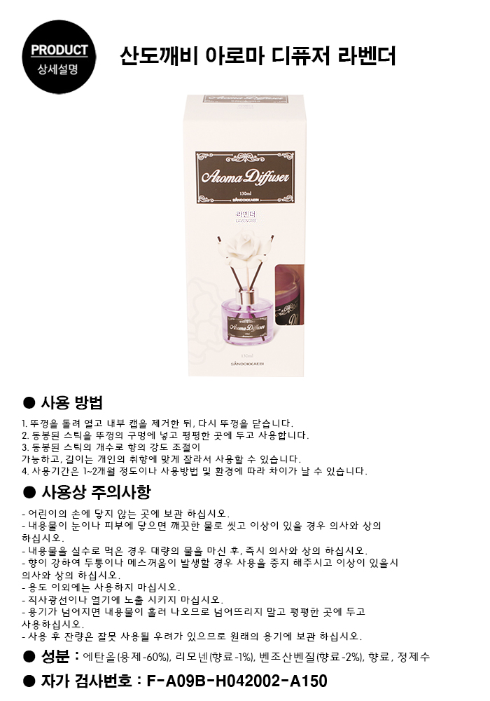 ■ 품명 및 모델명 : 산도깨비 아로마디퓨저 라벤더 130ml