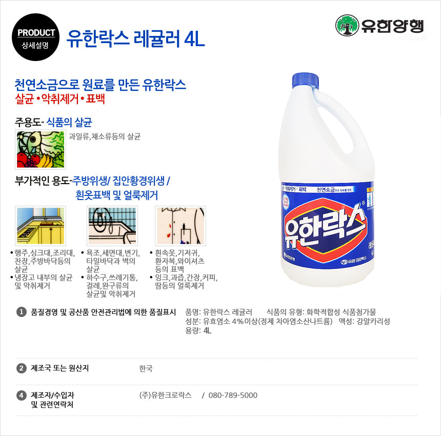 ■ 품명 및 모델명 : 유한락스 레귤러 4kg