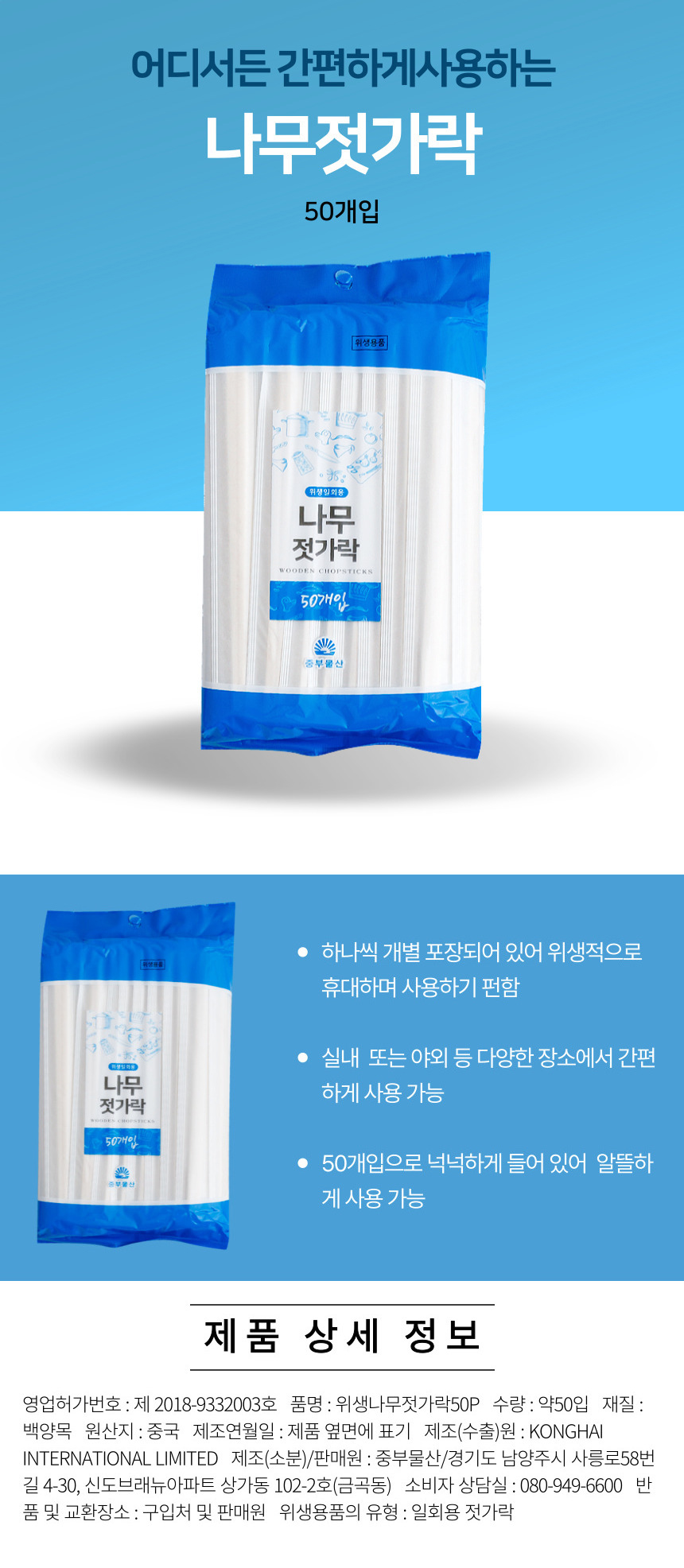 ■ 품명 및 모델명 : 나무젓가락 50P 중