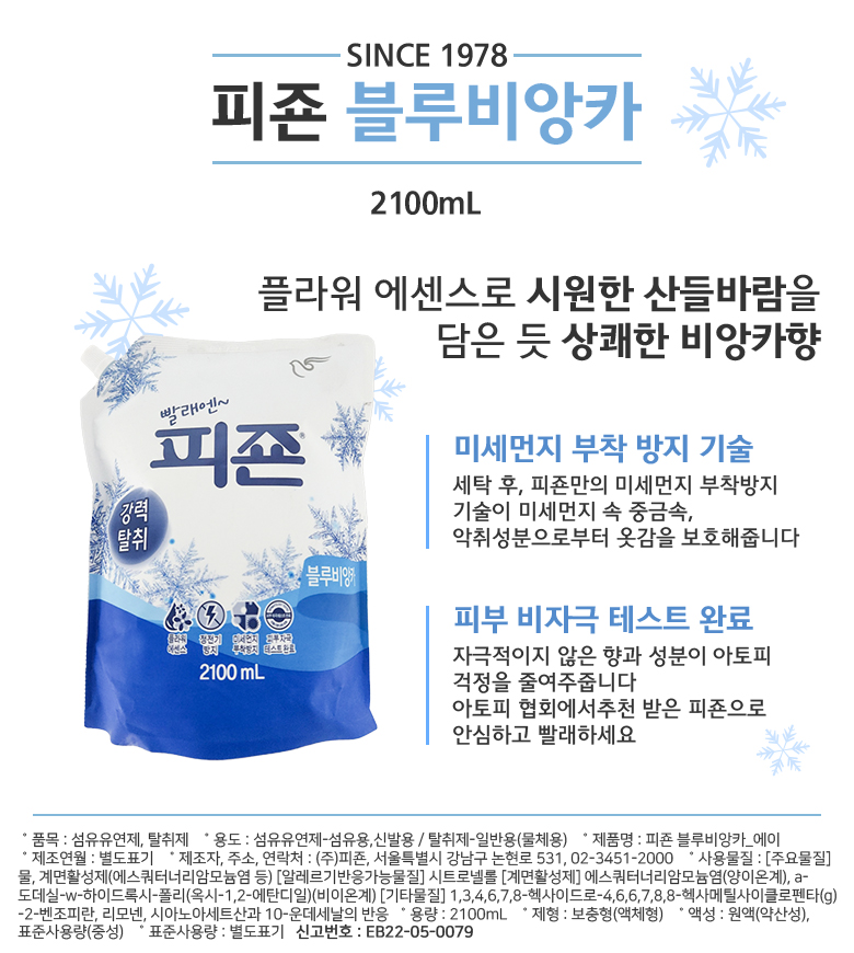 ■ 품명 및 모델명 : 피죤 2100ml 섬유탈취제 비앙카브리즈(블루비앙카)
