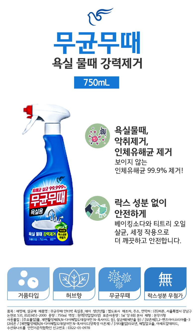 ■ 품명 및 모델명 : 피죤 무균무때 욕실용 750ml