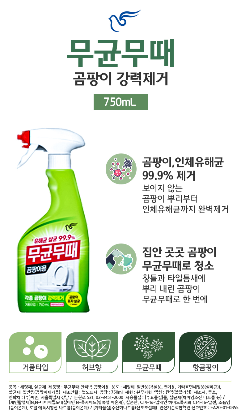 ■ 품명 및 모델명 : 피죤 무균무때 곰팡이 750ml