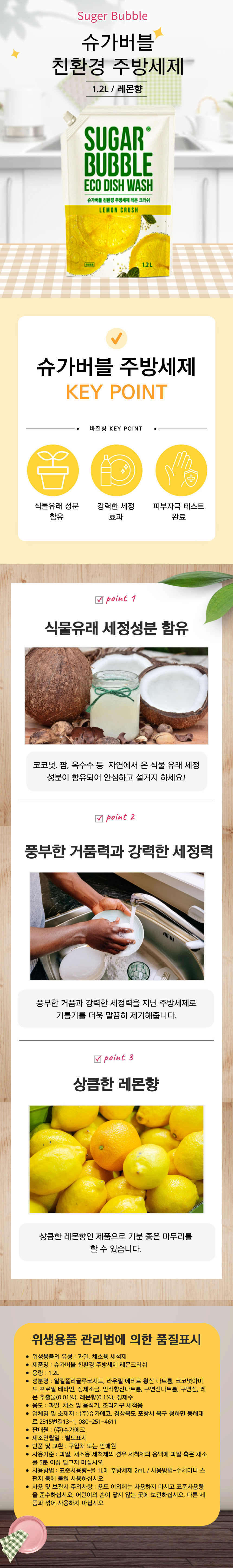 ■ 품명 및 모델명 : 슈가버블 베이직 친환경주방세제 1.2L 리필 레몬크러쉬