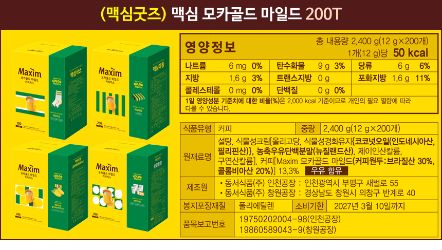 맥심 모카골드 굿즈기획 랜덤출고(12g*200T/동서식품)