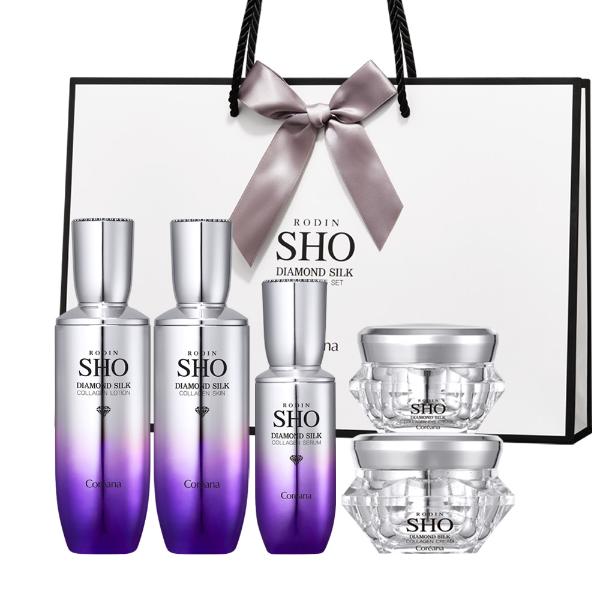 [업체배송]로댕 쇼다이아몬드 실크 콜라겐 5종 세트 쇼핑백포함(스킨120ml+로션120ml+에센스40ml+아이크림30ml+크림50ml/코리아나)
