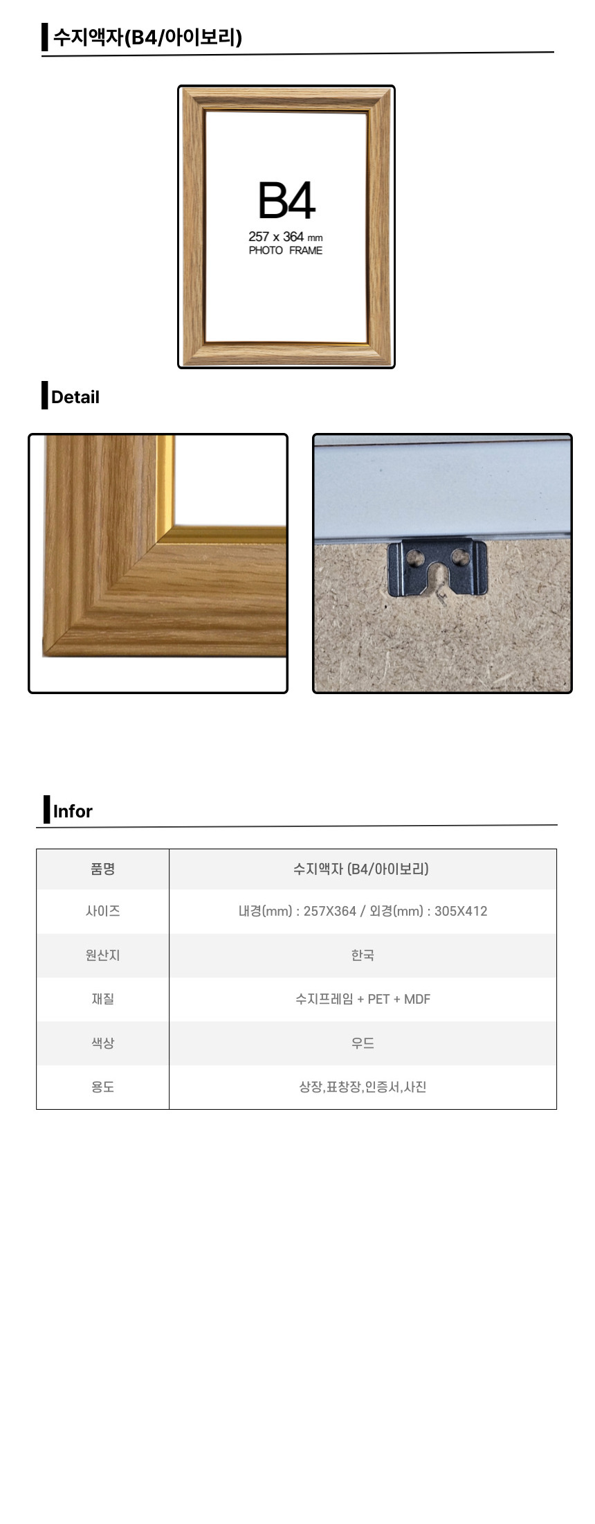 ■ 품명 및 모델명 : 수지액자(B4/아이보리/내경: 257*364mm)