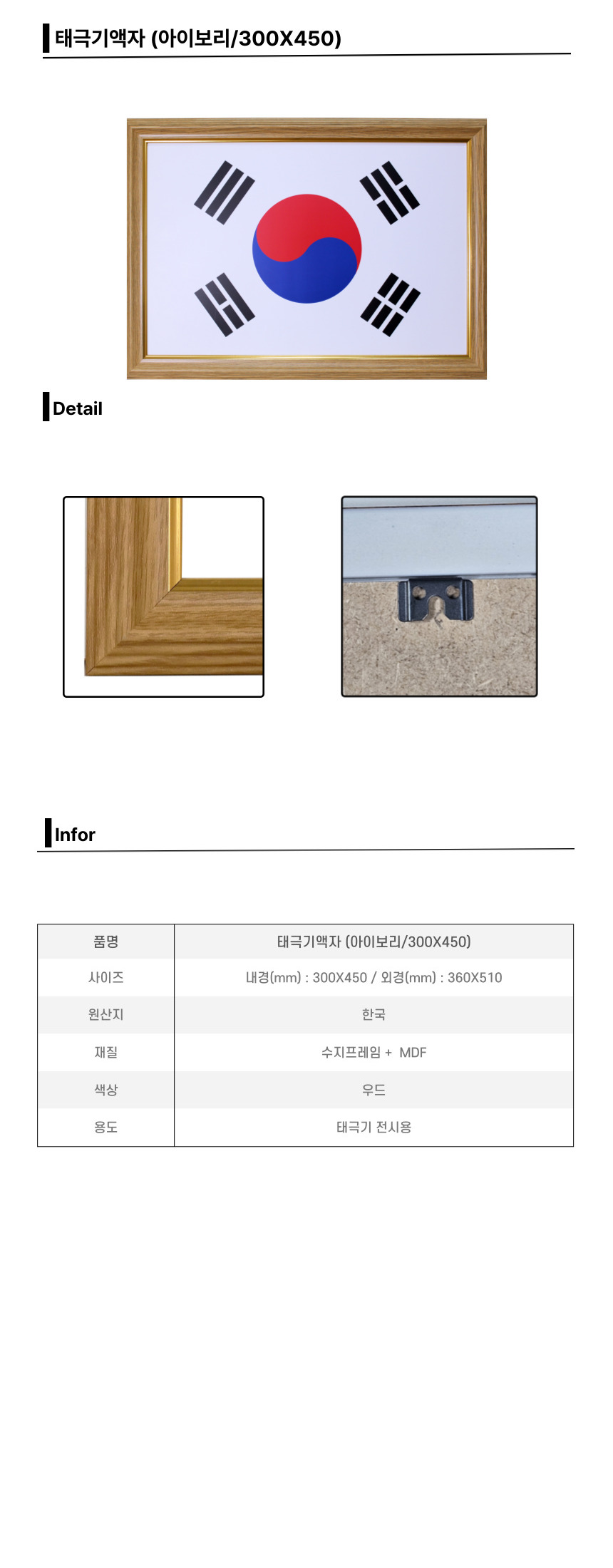 ■ 품명 및 모델명 : 태극기액자(아이보리/30*45/내경: 300*450mm)