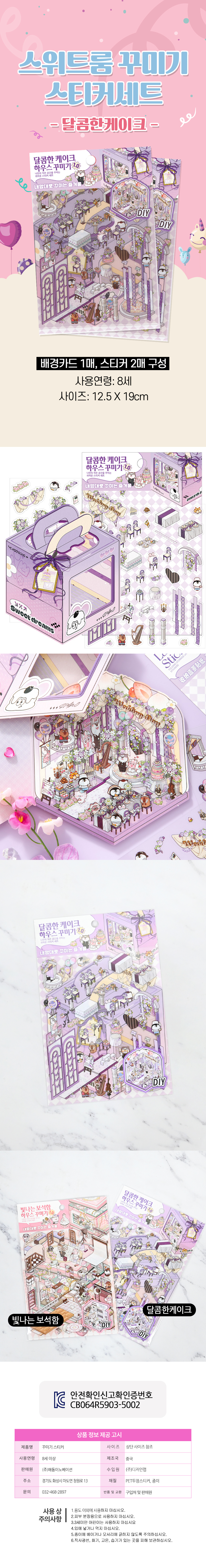 ■ 품명 및 모델명 : 달콤한케이크박스 스위트룸꾸미기 스티커세트(배경카드1장+스티커2장)