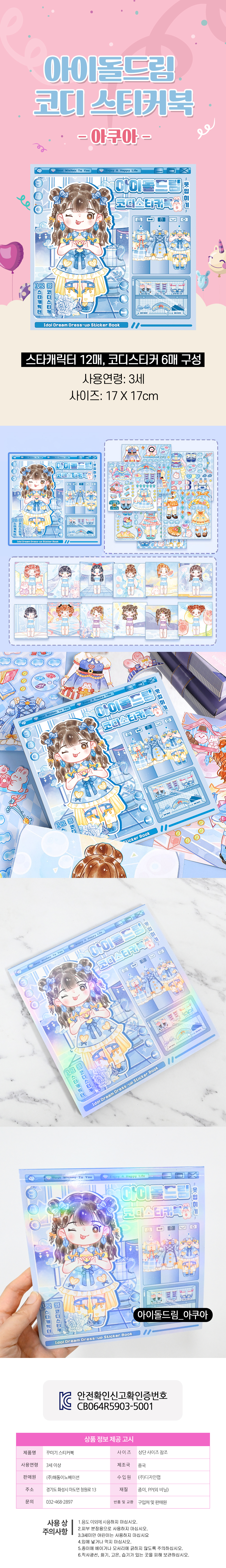 ■ 품명 및 모델명 : 아쿠아 아이돌드림코디 스티커북(스타12장+코디6장)