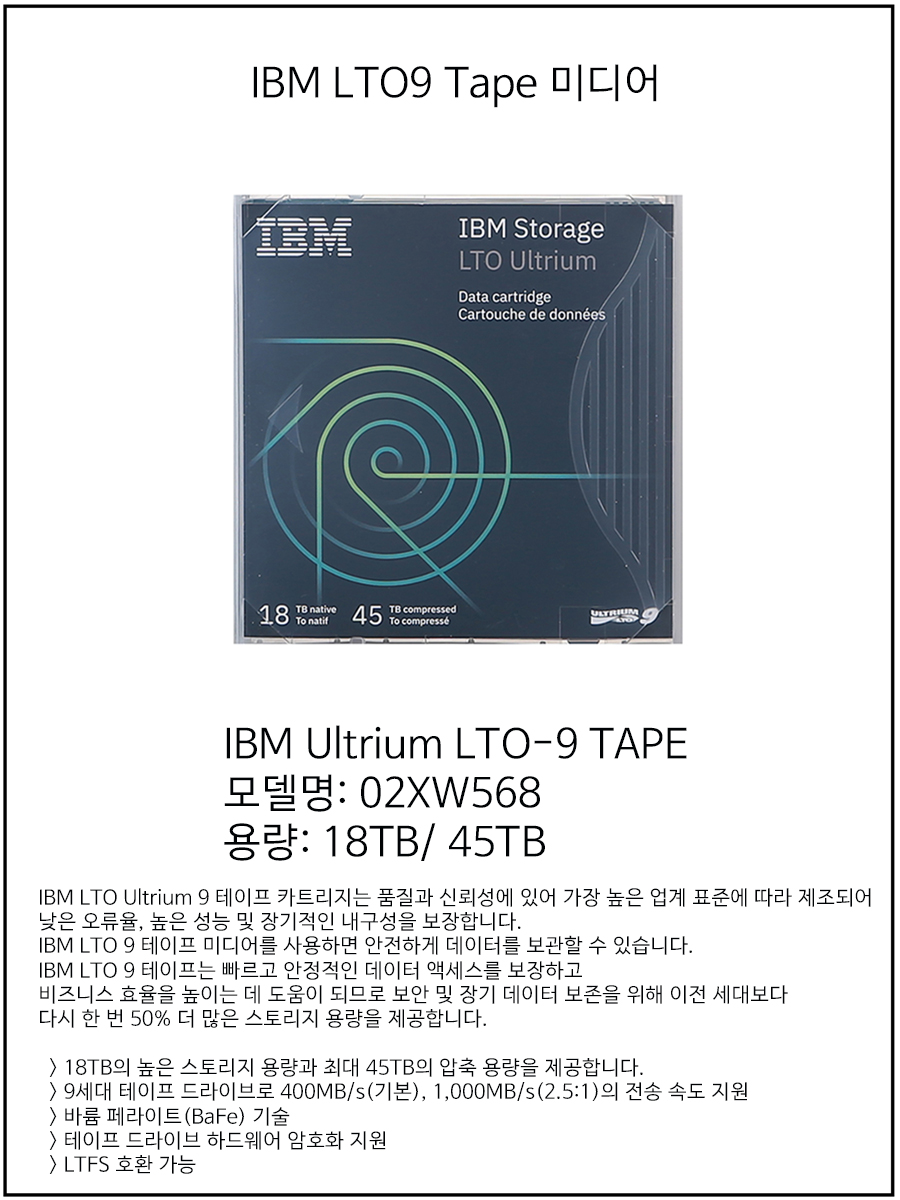 [업체별도배송]18TB-45TB 02XW568 IBM총판 LTO9 Ultrium9 GEN9 바코드라벨포함